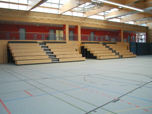 3-reihige Tribüne mit verschiebbarer Prallwand